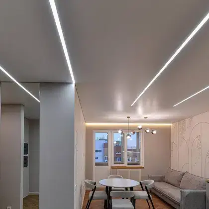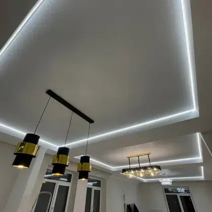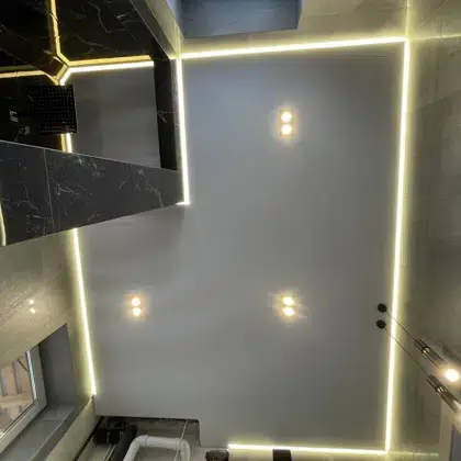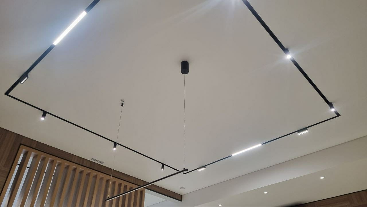 - Любой тип потолка (включая фотопечать, парящие и двухуровневые конструкции)